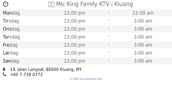 • Alamat: Karaoke terletak di 19, Jalan Langsat, Kampung Masjid Lama, 86000 Kluang, Johor Darul Ta'zim, Malaysia.